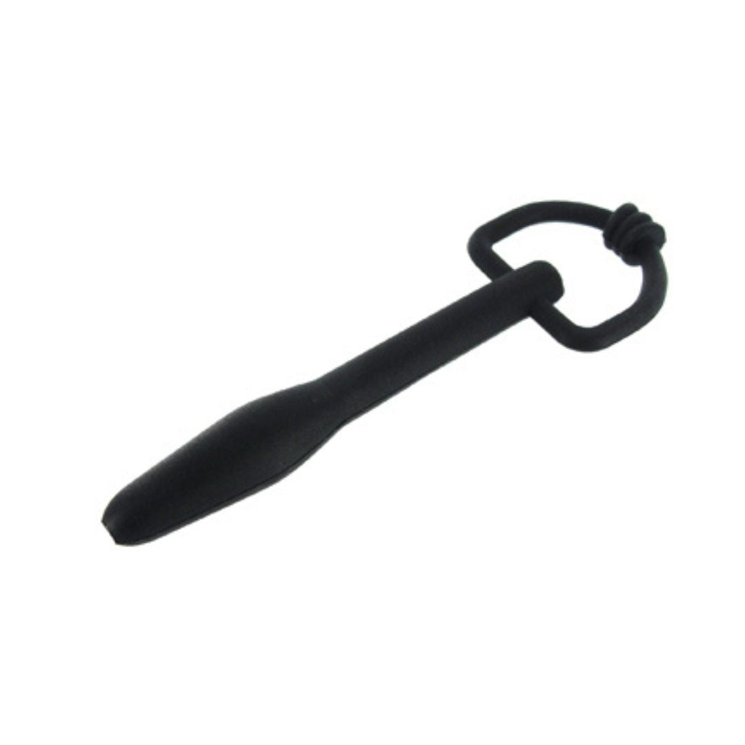The Hallows Cum-Thru D-Ring Penis Sound Plug Master Series. Experience the stimulating sensations of urethral play with the Cum-Thru D-Ring Plug by Master Series. Crafted from high-quality, body-safe silicone, this lightweight and flexible plug bends with your body for a comfortable and pleasurable fit. The D-ring at the end ensures easy retrieval and adds a stylish touch to your play.